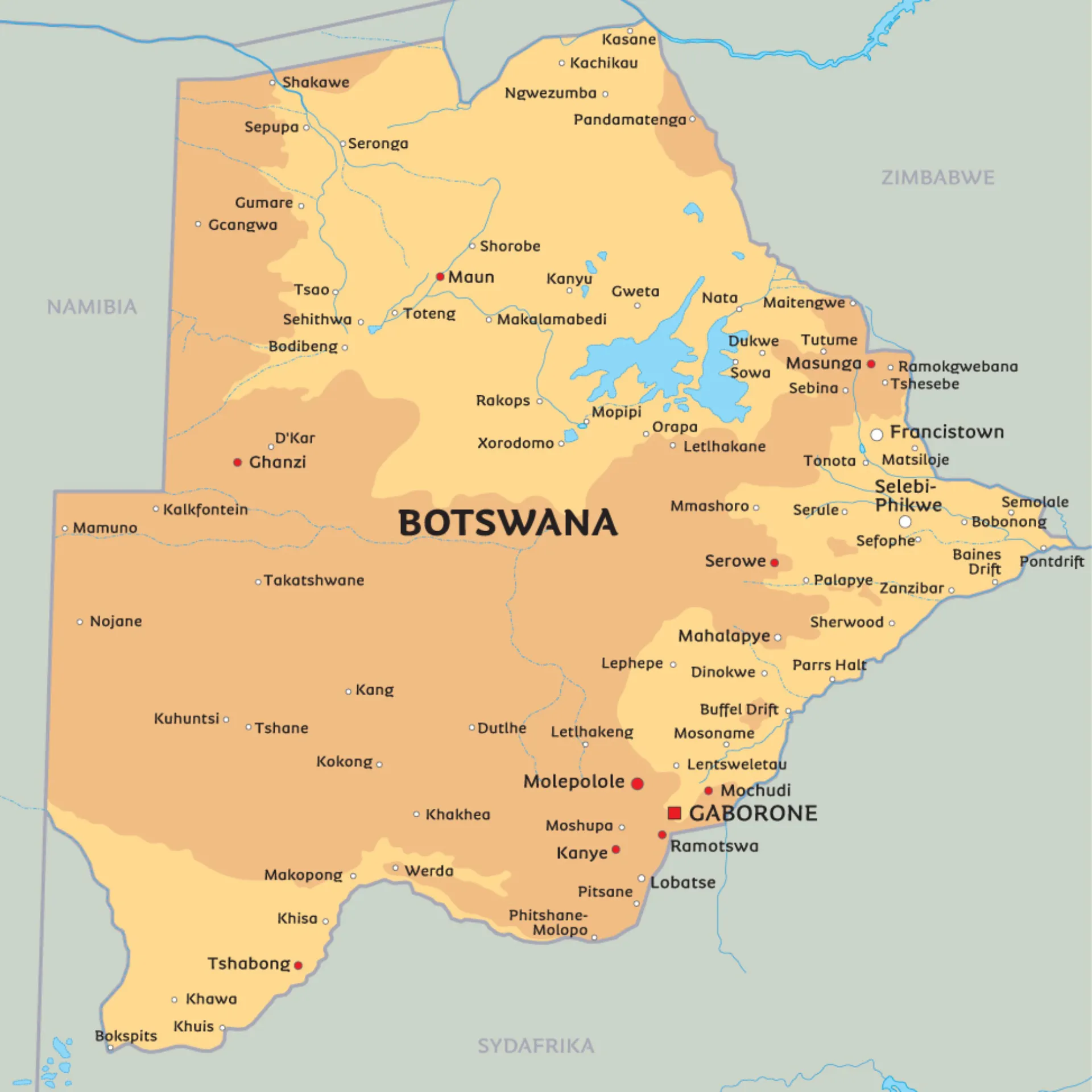 Åbn kortet i et nyt vindue – Kort over Botswana